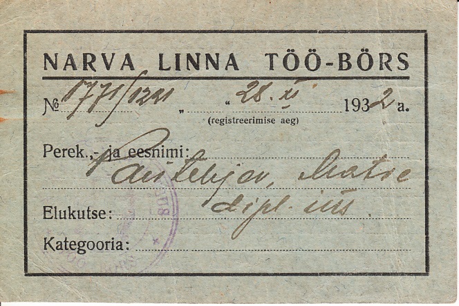 10:12, 10 января 2016 Учетная карточка Нарвской трудовой биржи (удостоверение безработного) М.Ф. Пантелеева, 1932.jpg (файл) 151 КБ Admin {{PAGENAME}} 1