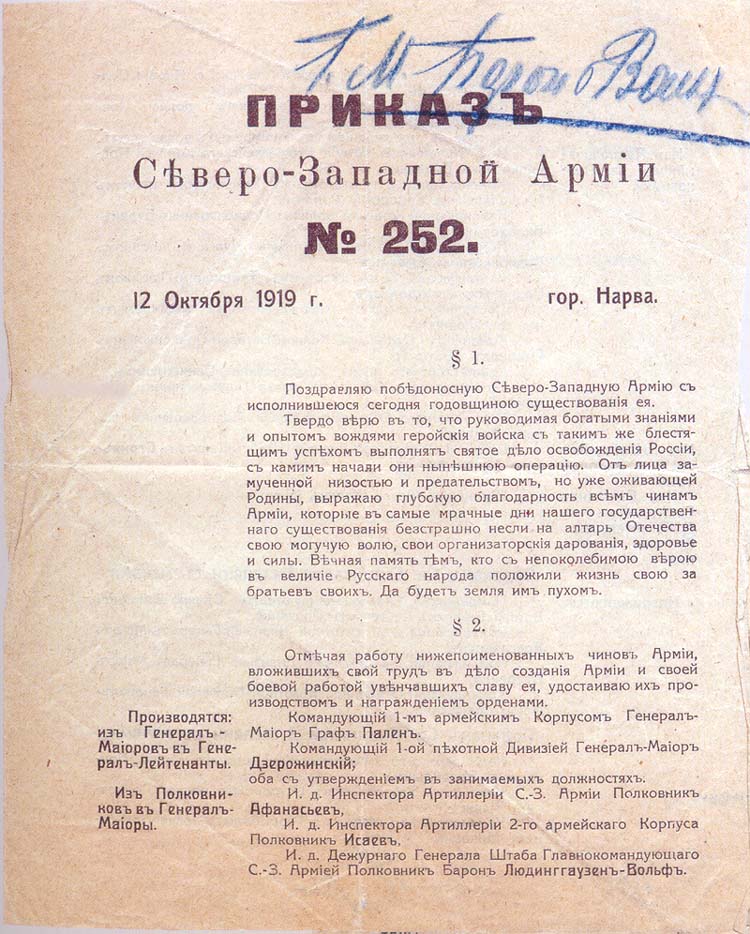 22:55, 29 октября 2014 Приказ Северо-Западной армии № 252 от 12.10.1919.jpg (файл) 147 КБ Admin   1