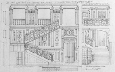 Проект дубовой лестницы в имении Моква Курской губернии, 1909