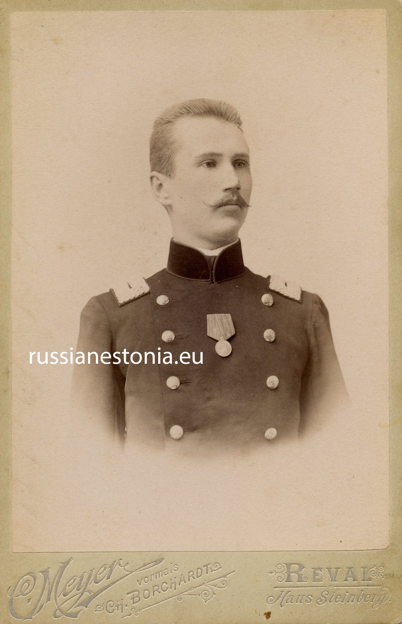 | − | Неимеющий чина служащий [[Почтово-телеграфные учреждения в Эстляндской губернии|почтово-телеграфного ведомства]]. Город Ревель. Фотоателье [[ | + | Неимеющий чина служащий [[Почтово-телеграфные учреждения в Эстляндской губернии|почтово-телеграфного ведомства]]. Город Ревель. Фотоателье [[Мейер Карл-Эдуард Робертович|Карла Мейера]]. Источник: собрание Тыну Пармаксона. |