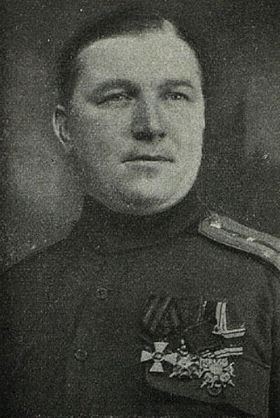 Награды: пожалован орденом Св. Георгия 4-й ст. за то, что будучи в чине подпоручика 1-го Заамурского пограничного пехотного полка, в бою 31.08.1915 у фольварка Дуплиска за ранением командира роты, по собственной инициативе, принял роту и повел в атаку, под ураганным артиллерийским, пулеметным и ружейным огнем, преодолев проволочные заграждения, штыковым ударом овладел ими и захватил 1 действующий пулемет. Затем вновь атаковал противника, завладел фольварком Дуплиска, захватил 300 пленных, и во время атаки был ранен в ногу навылет, но роту не оставил, а привел ее в порядок и устроил на новой позиции (Пр. по армии и флоту 25.05.1917).