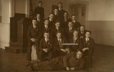 Реальное отделение 7-го выпуска Ревельской городской русской гимназии, 1930. Евгений Гайкович второй слева в первом ряду