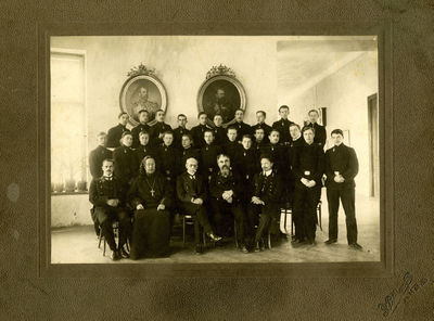 Выпуск Нарвской мужской гимназии. Отец Иоанн Кочуров сидит второй слева