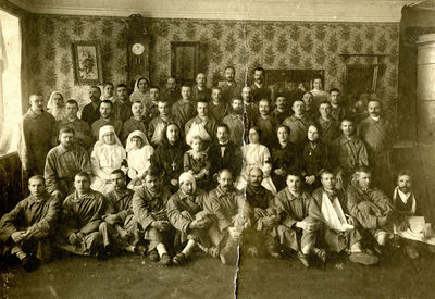 Лазарет в Нарве, 1915. Отец Иоанн Кочуров сидит четвертый слева во втором ряду