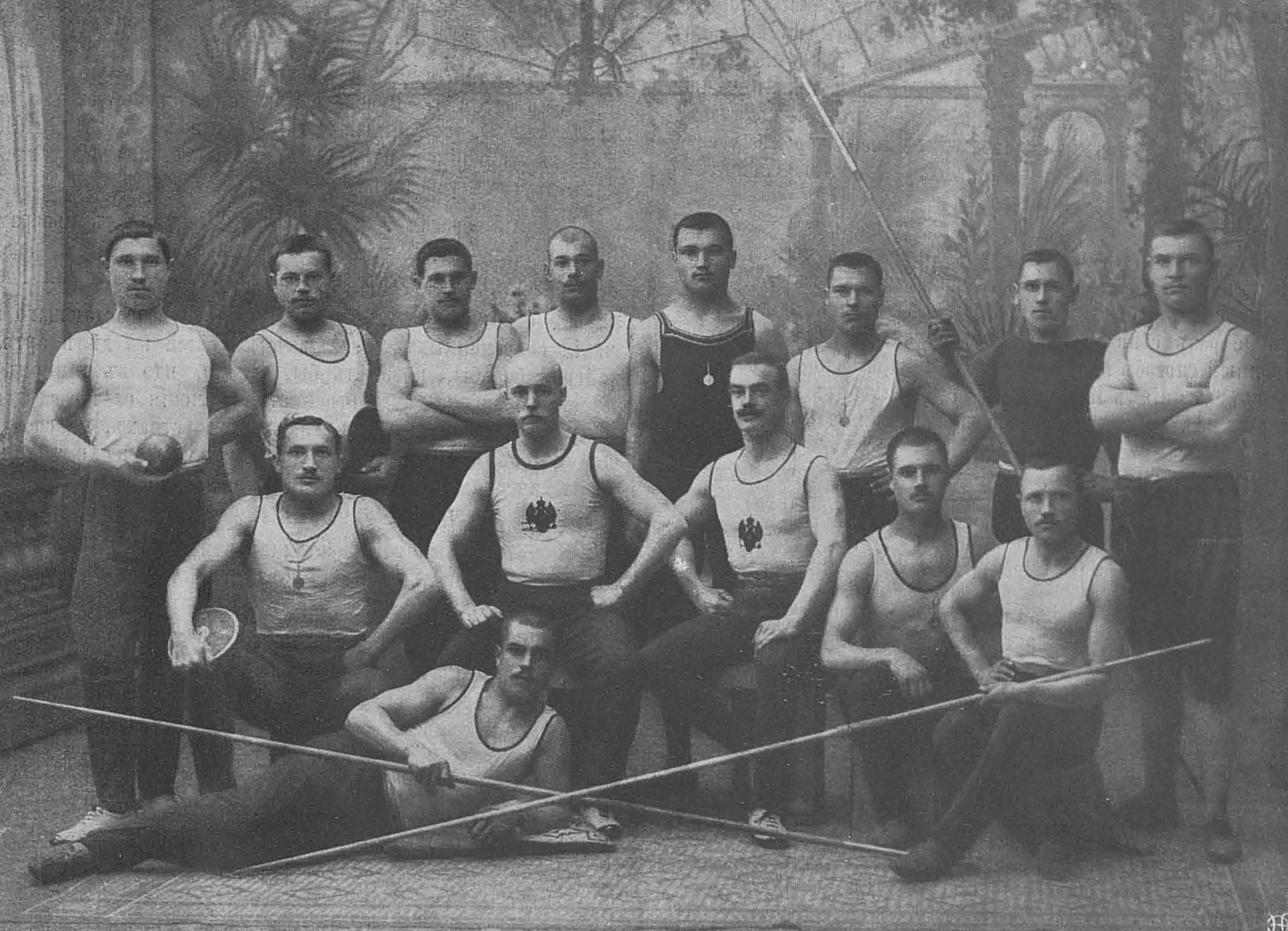 Группа инструкторов гимнастики пулеметной команды 90-го пехотного Онежского полка, 1913. Источник: журнал военный и литературный "Разведчик" № 1211, 13.01.1914. С. 35.