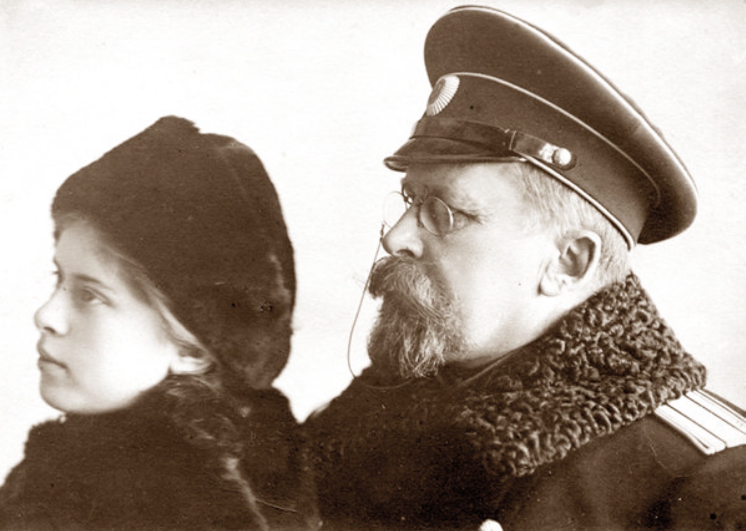 Коллежский советник Гомзяков Павел Иванович с дочерью Натальей. Ревель, 1914. Фотоателье Александра Магнусовича Юриха. Источник: Хабаровский краевой музей им. Н.И. Гродекова. Публикация: Зилова Клара. Песни моря. // Словесница искусств. Региональный культурно-просветительский журнал. № 1(33), 2014.