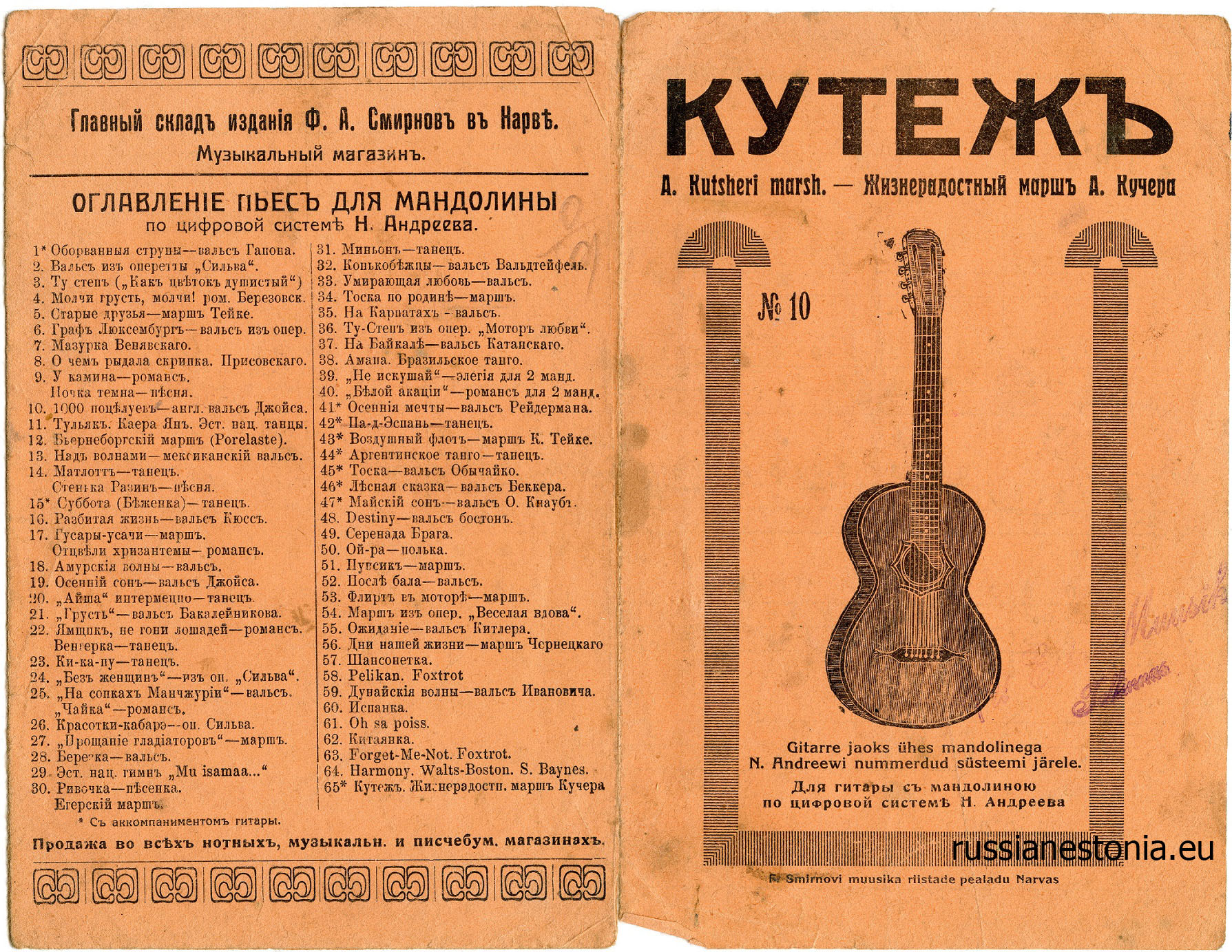 Ноты марша А. Кучера «Кутеж» издания Ф.А. Смирнова в Нарве