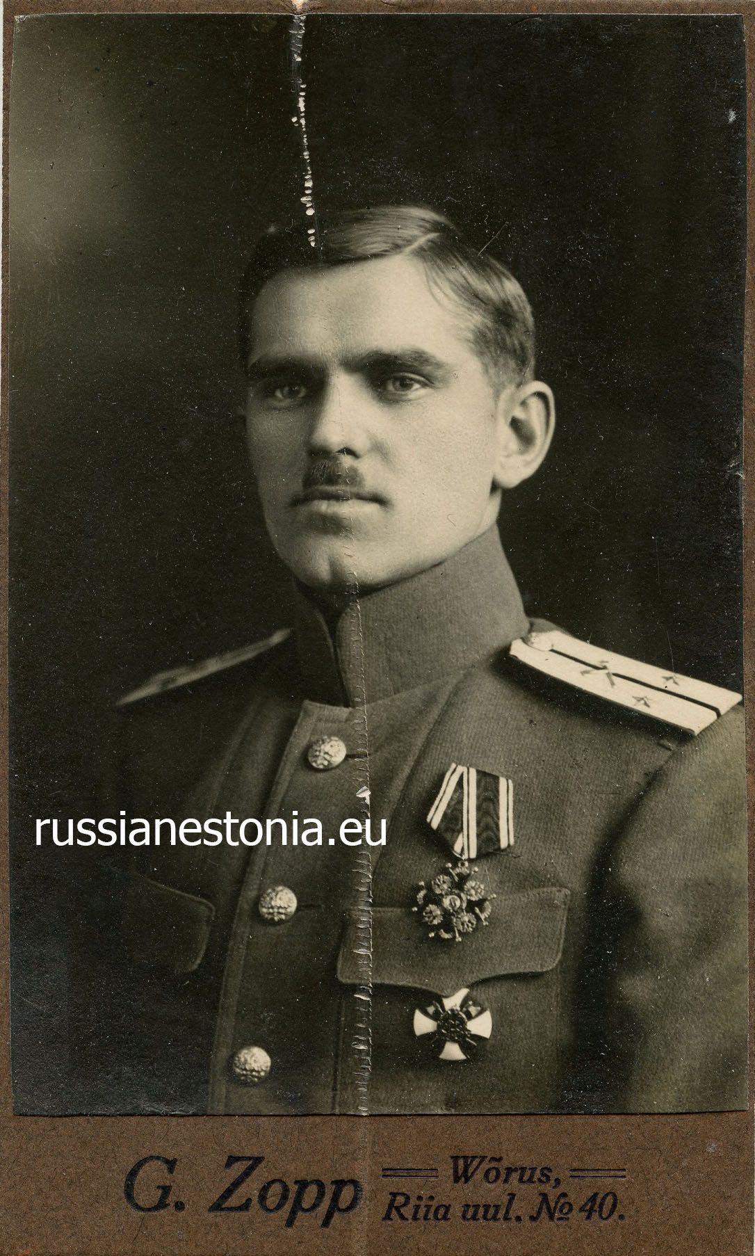 Подпоручик инженерных частей. Верро, не ранее марта 1916. Орден Св. Станислава 3-й ст.; знак об окончании Школы прапорщиков инженерных войск в Петрограде. Фотоателье Густава Цоппа.