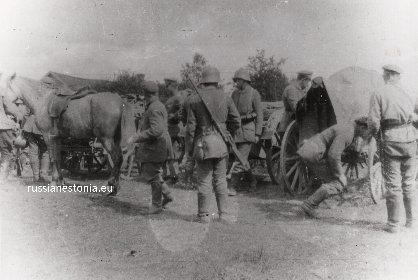 Чины Светлейшего князя Ливена дивизии готовятся перейти реку Луга, 10.10.1919.
