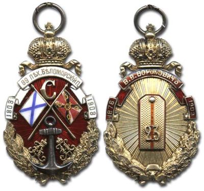 Военный чиновник Халтурин Никанор Никифорович с жетоном 89-го пехотного Беломорского полка. Город Ревель